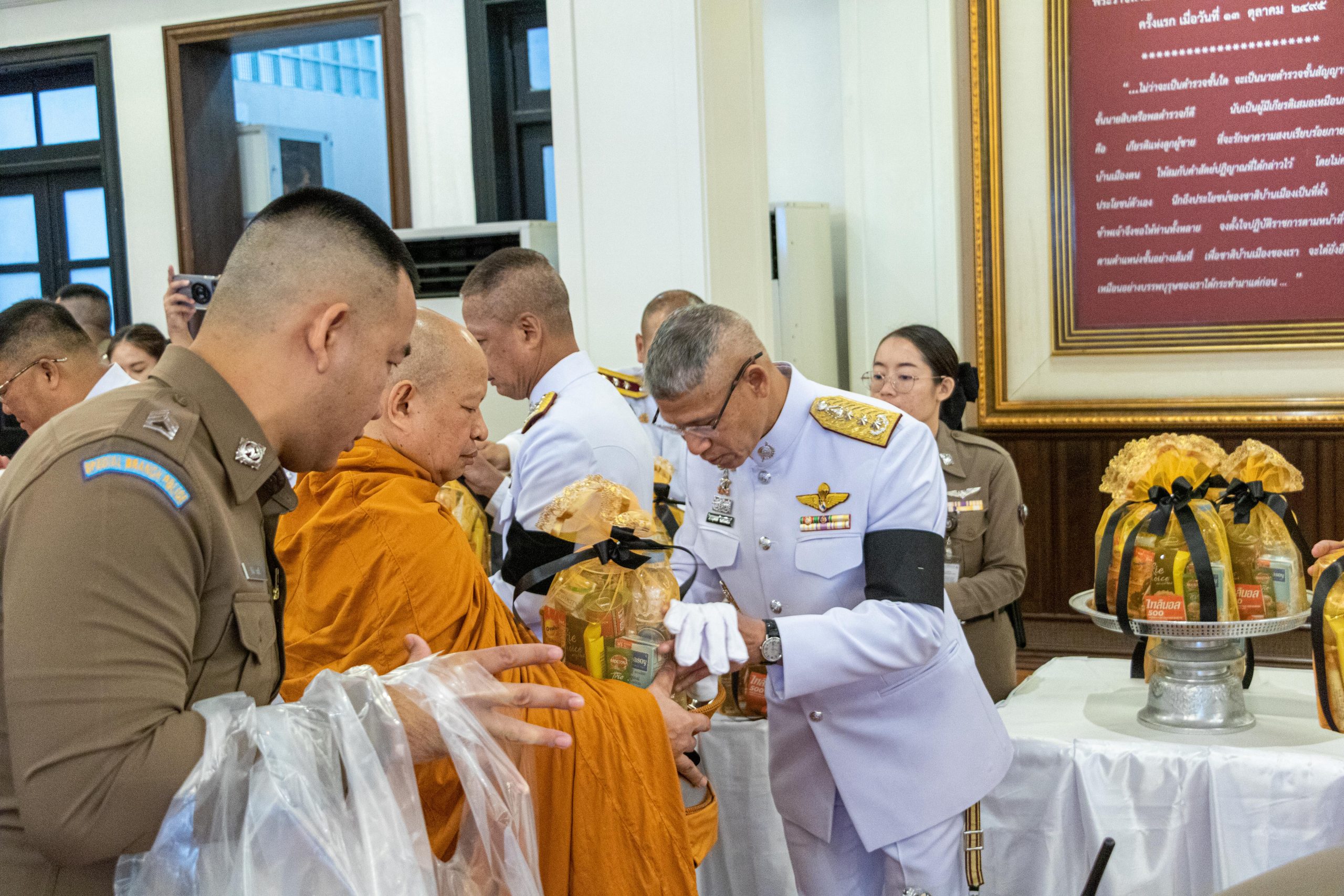 รอง ผบ.ตร., จเรตำรวจแห่งชาติ, ผู้ช่วย ผบ.ตร., รองจเรตำรวจแห่งชาติ, ข้าราชการตำรวจ และคณะสมาคมแม่บ้านตำรวจ ร่วมพิธี เพื่อถวายความอาลัยด้วยน้อมสำนึกในพระมหากรุณาธิคุณเป็นล้นพ้นอันหาที่สุดมิได้ ณ ห้องสารสิน สำนักงานตำรวจแห่งชาติ