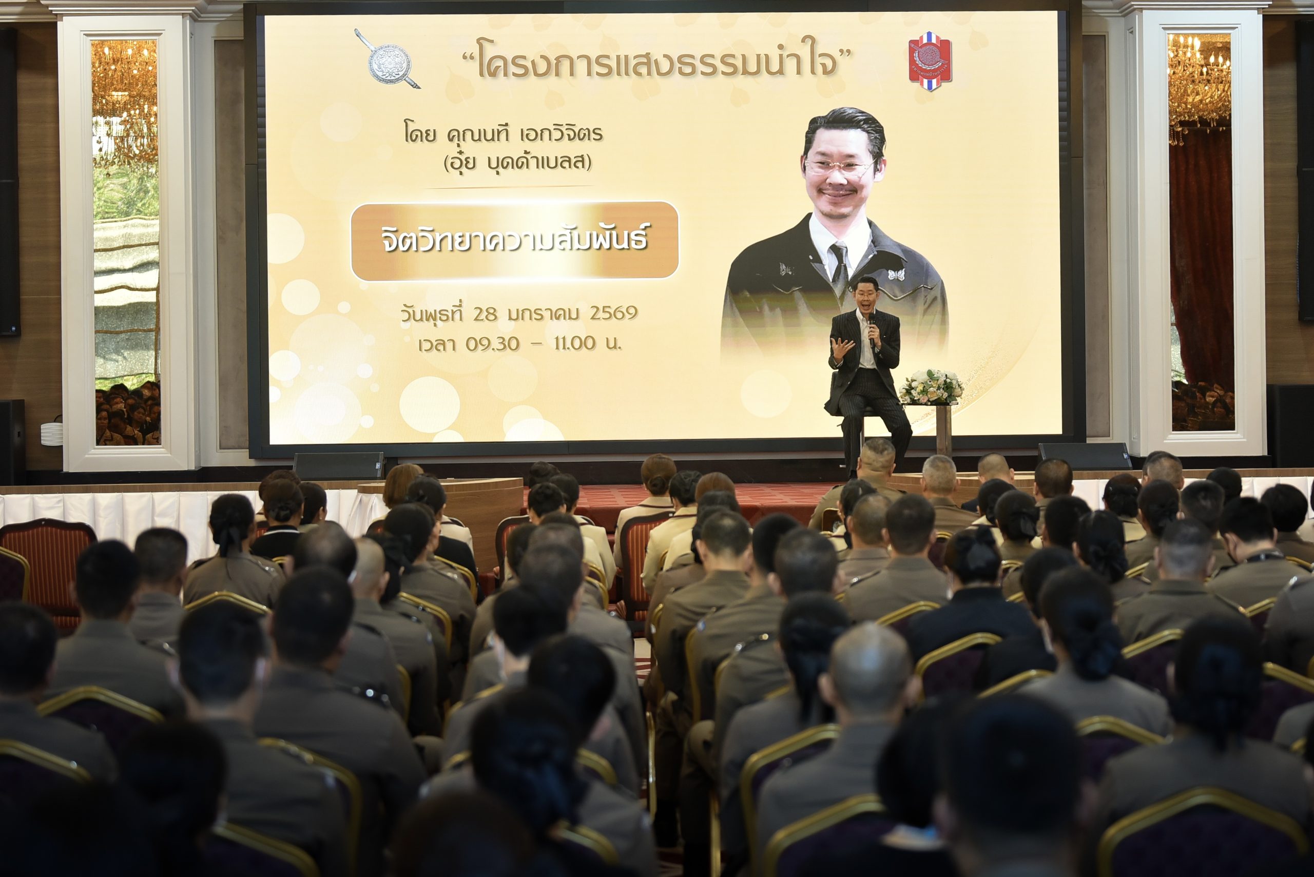 พล.ต.ท.ภาณุพงศ์ ชอบเพื่อน ผบช.สงป. พร้อมด้วย พล.ต.ต.หญิง วิรญา พรหมายน ผบก.กช. และข้าราชการตำรวจ ในสังกัด สงป. เข้าร่วมรับฟังบรรยายโครงการแสงธรรมน้ำใจของ ตร. ประจำปีงบประมาณ พ.พ.ศ.2569 ครั้งที่ 1 ในวันพุธที่ 28 ม.ค.69 ระหว่างเวลา 09.30 – 12.00 น. ณ ห้องประชุมแจ้งยอดสุข ชั้น 2 อาคารศูนย์ฝึกอบรมพัฒนา บุคลากรและสวัสดิการ ตร.